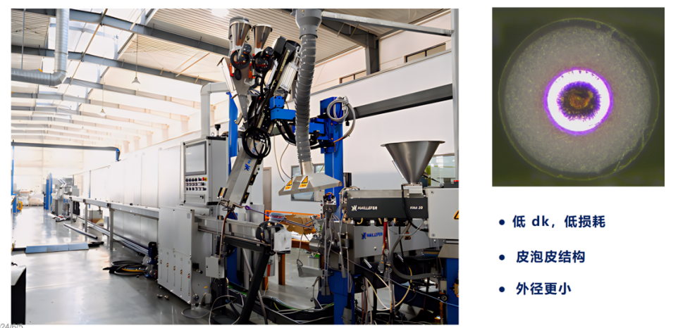自主研发技术:公司采用先进的FEP物理发泡技术,显著降低绝缘材料的介电常数,从而减少信号衰减。同时,通过优化的导体材料(如高纯度镀银铜)和精密的屏蔽结构设计,提升了传输性能和信号完整性。